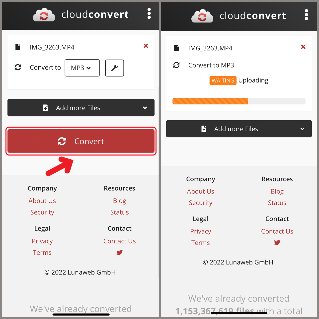 Bước 4: Bạn chọn Convert > Sau đó chờ video tải lên.